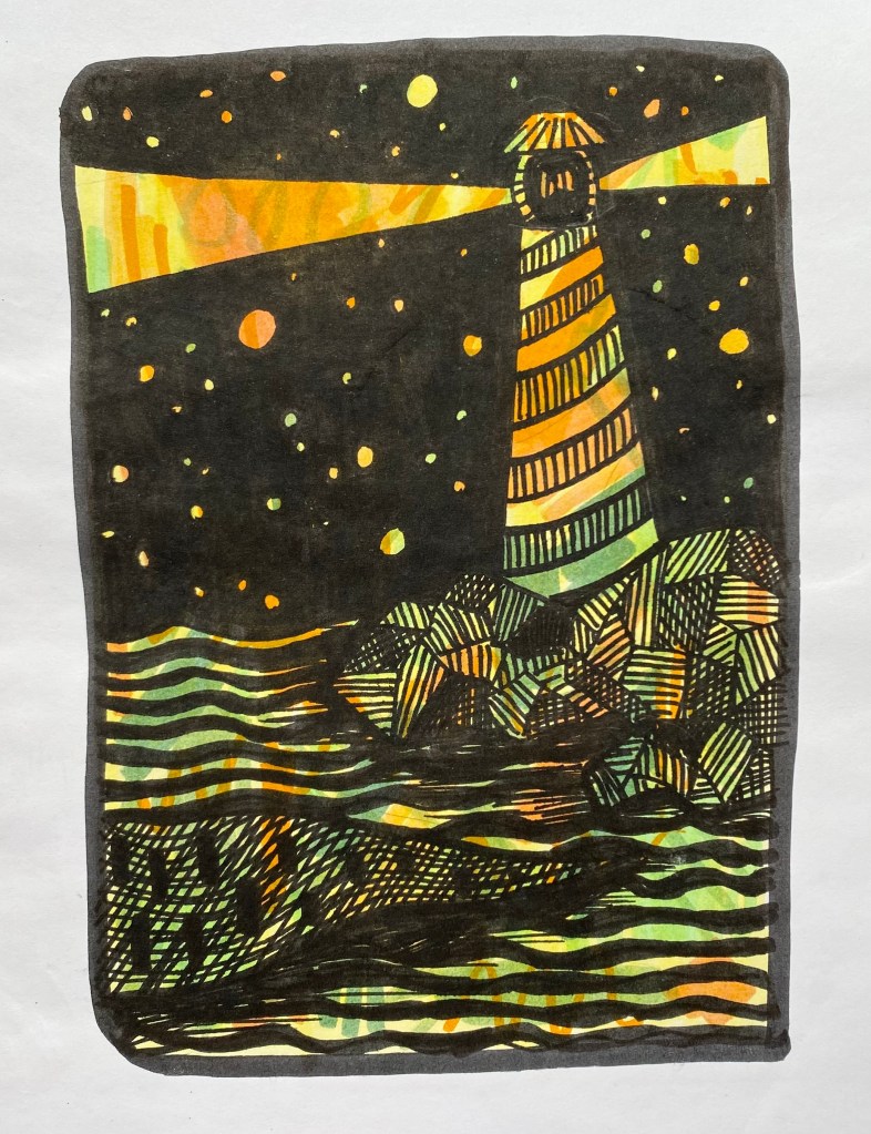 Comments: I’m not really a fan of this one. I meant it to look a little bit like a wood block print, but it didn’t turn out like the picture I had in my mind. Can’t make a winner every time!